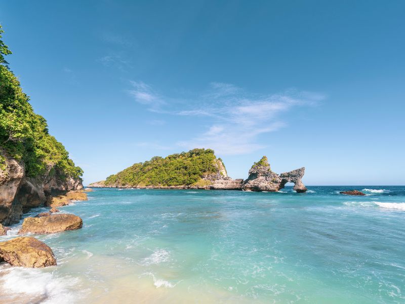 Return boat transfer Pick up & drop hotel Lunch Retribution Insurance Island tour (Kelingking Beach, Diamond Beach, Tree House, Atuh Beach)